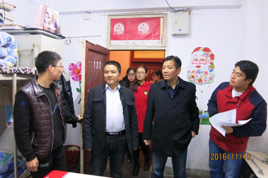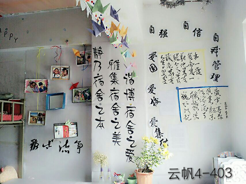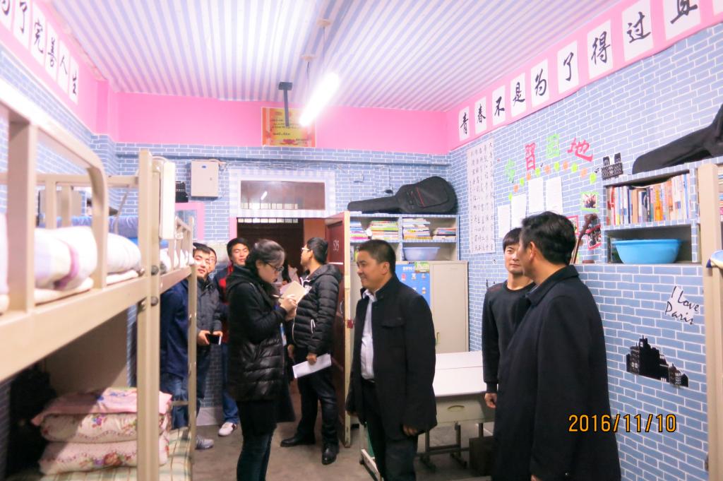 宿舍检查开始后,领导和老师首先进入博学楼对公司男生宿舍进行检查。在检查过程中,吴书记和崔书记对上一次检查评比出的优秀宿舍卫生保持良好,文化墙布置得很有创意等方面连连称赞。在检查云帆女生宿舍时,崔书记亲自对优秀宿舍云帆4-303进行了拍照,他表示,4-303宿舍每个人在床边的墙上粘贴励志标语的装饰方法非常好,这不仅起到了美化作用,还有激励上进的作用,一举两得。在检查上一次评比出的不合格宿舍时,吴书记和崔书记对他们的改进结果十分满意。吴书记告诉他们,卫生关系到每个人的健康问题,所以宿舍卫生一定要重视,重在能够长期保持良好的卫生状态。在整个检查过程中,崔书记每到一间宿舍,都会重强调宿舍用电安全问题,并告诉大家,用电问题关系到每一个人的安全,一定要高度重视。同时他还指出:用电安全与宿舍文化布置同样重要,不可顾此失彼。
