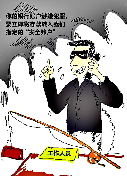 通常会有“邮政局紧急通知,你有一份包裹已到达,因地址不详无法投递,请速联系0756-12345678珠海邮局”的短信发到手机上。如果照着上面的电话打回去,她会让你报出自己的姓名和联系方式,然后告诉你说你的包裹里有毒品等非法物品,包裹已经移交公安局,请协助公安局进行调查。冒充警察的人会告诉你,你的身份资料可能已经被犯罪团伙利用,让你去银行柜台机安装一个安全保护系统,通过一系列操作后你银行卡内的钱将全部转入诈骗分子账户内。