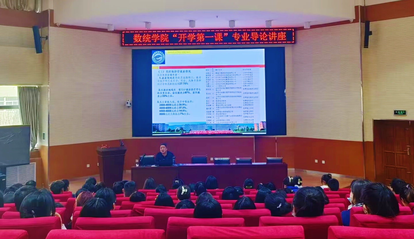 谢保利从中国高等教育发展史切入,阐述了我国统计学专业教育情况及什么是统计学。详细介绍了统计学专业学习规划、课程体系设置、专业培养方案、学位授予要求、及统计学专业特色优势、发展现状、未来展望、就业前景等,让同学们对统计学专业有了更深层次的理解。同时,他还向同学们说明了统计师职业所需要的职业技能和职业素养,引导员工更好的了解所学专业,加深对专业的理解,尽早做好个人职业生涯规划。并对同学们启航新学期、奋进新征程提出殷切希望,鼓励同学们做有理想、敢担当、能吃苦、肯奋斗的新时代好青年,让青春在全面建设社会主义现代化国家的火热实践中绽放绚丽花。
